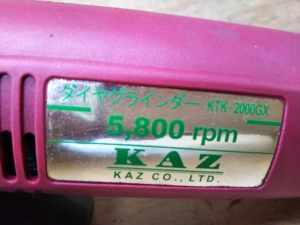 ただしこれを使うためのディスクグラインダーは、通常のものでは回転が速すぎて刃先の焼きが戻るので、低速のグラインダーが必要だ。