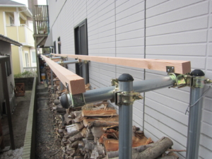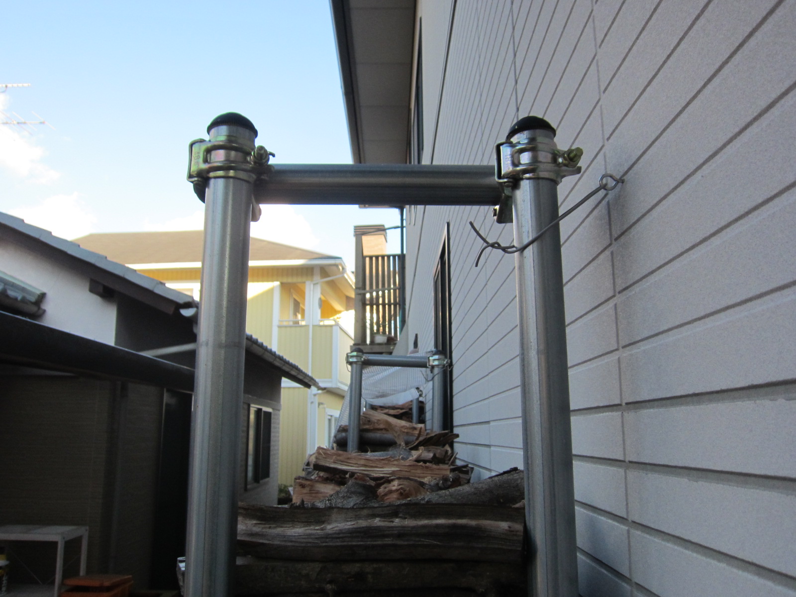 横の単管パイプの間隔は薪を置いたときのことをイメージしながら決めました。