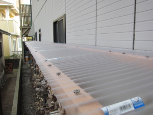 ポリカは紫外線防止剤を片面だけコーティングしているので、「この面を太陽側に」とか書いている面を太陽面に向けます。