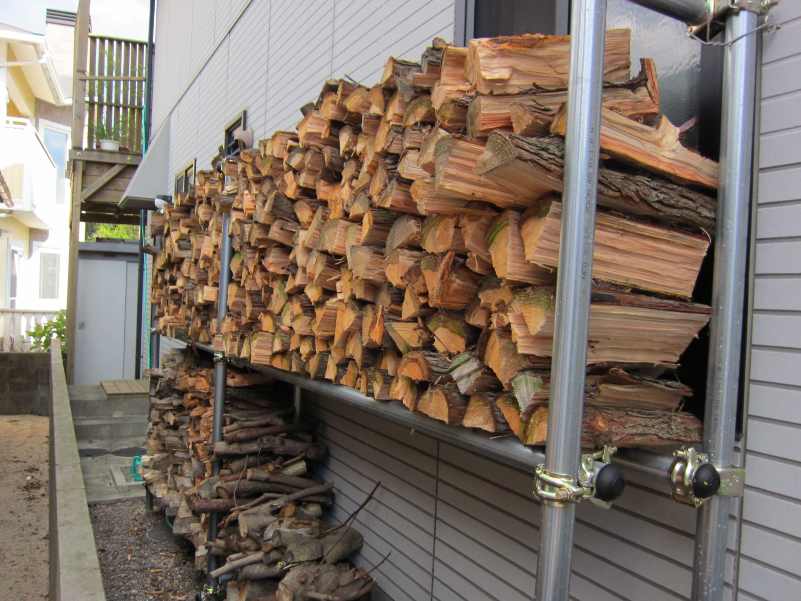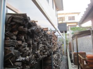 一応2階の屋根のひさしがあるので雨はかかりにくいのですが、大雨が降った後は薪に雨水がかかります。