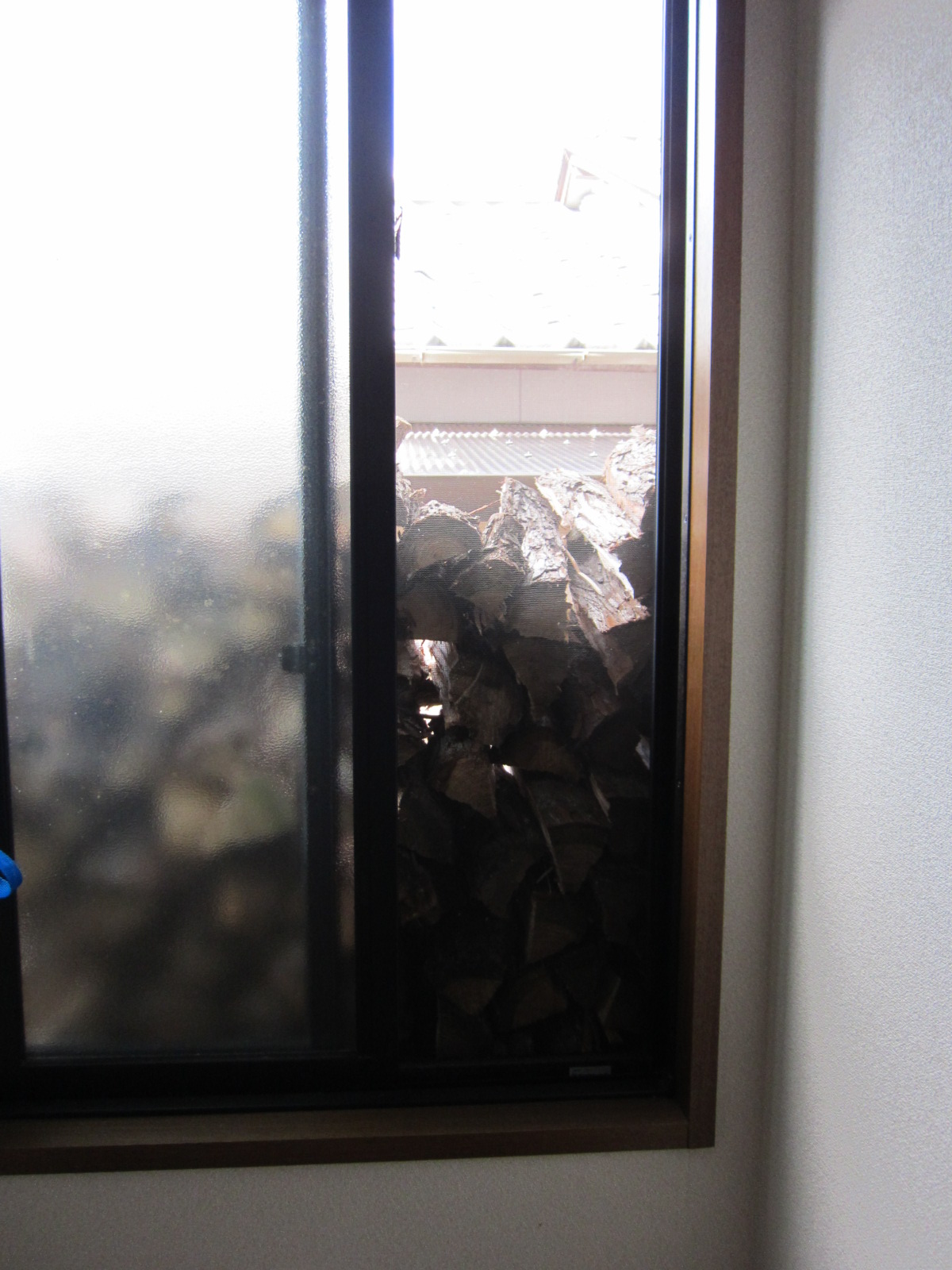 窓を開けると、一々外に出なくても窓を開けて屋内から薪を取り入れることができます。