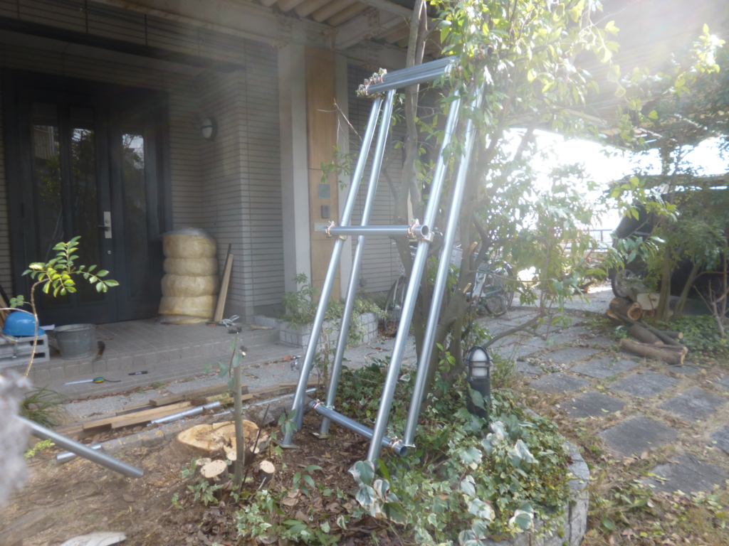 それを立て、別の単管パイプで倒れないように支えておきます。
