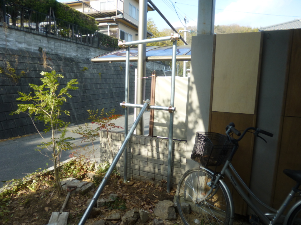 右側の自転車の上の空間は、雨水・風呂水タンクを増設する場所です。