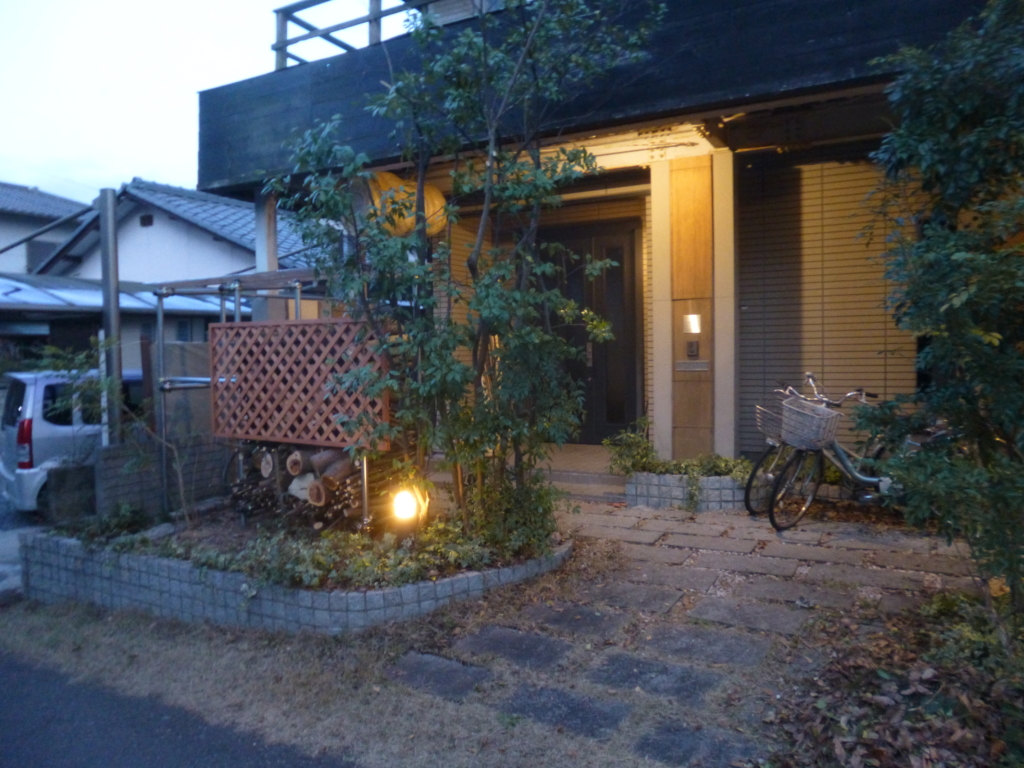我が家の玄関は道路に面した位置にあるので、道路との間に目隠しをかねて設置することにしました。