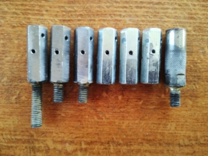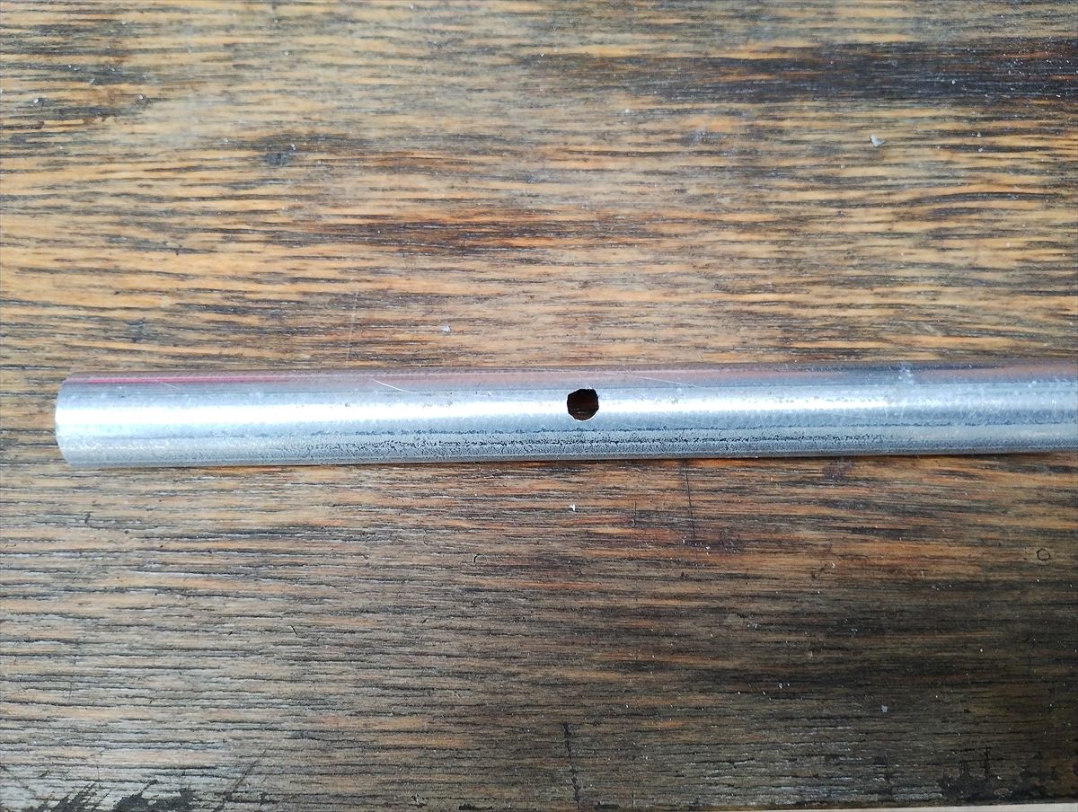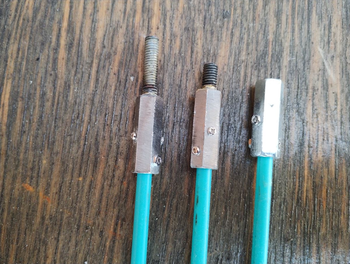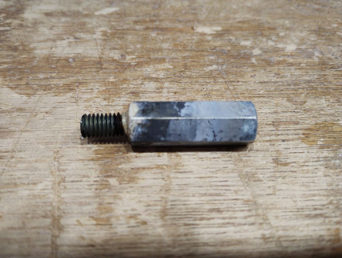 従ってホンマ製のスチールシャフトについていたM9の雌ネジをシャフトから切り離し、雌ねじの反対側に直径6mmの穴を開け、M6のネジを差し込みロウ付けします。