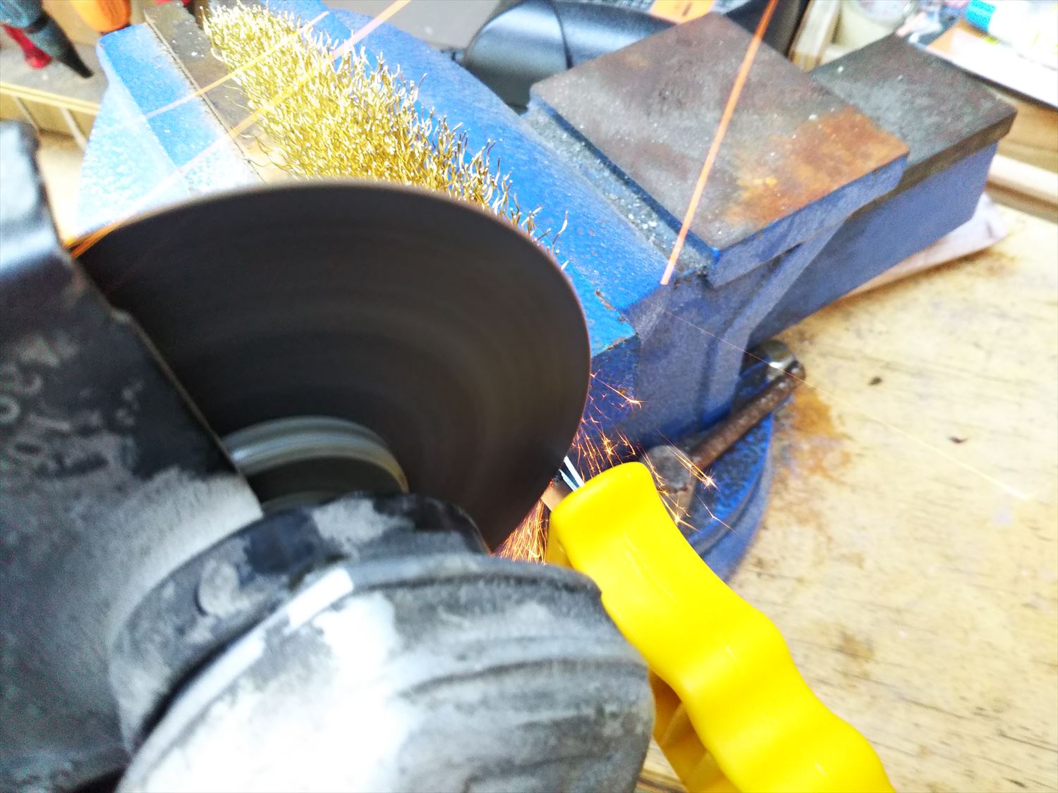 これの先をディスクグラインダーで切り込みを入れます。